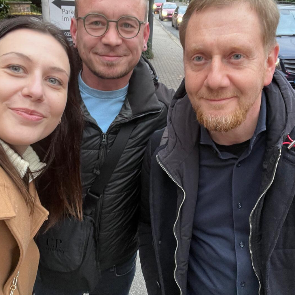 Wenn du einfach nur in Dresden Straßenbahn fahren willst und plötzlich Ministerpräsident Michael Kretschmer triffst. Keine Limousine, kein Blitzlicht, einfach ganz normal im Dresdner Nahverkehr unterwegs.